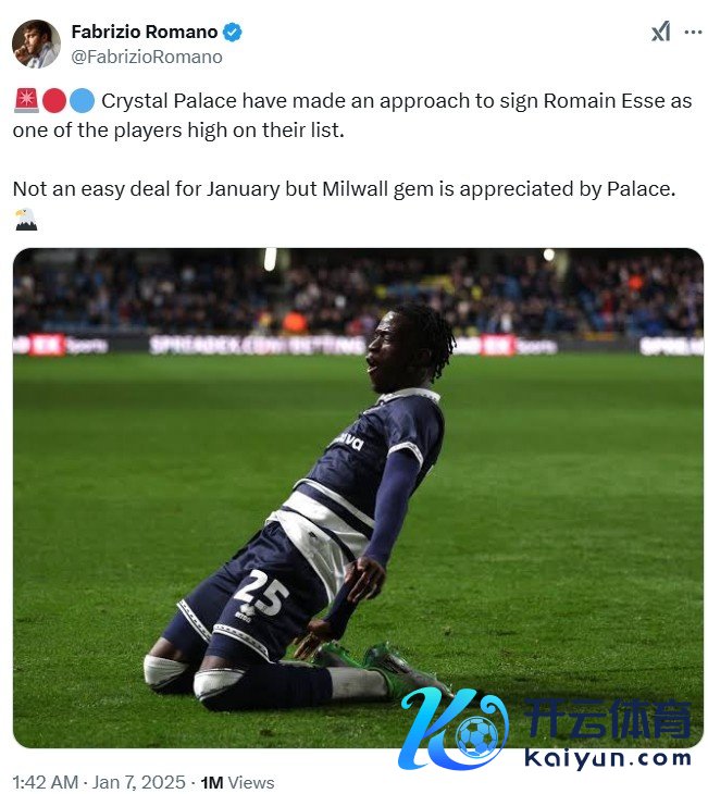 1月7日讯 罗马诺报谈,水晶宫特意英冠球队米尔沃尔19岁中场埃塞,埃塞是水晶宫引援名单上的要紧球员之一。