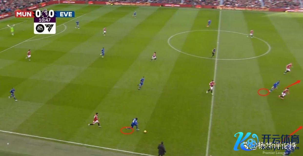 逼抢亦然有重心的,伊普斯维奇、埃弗顿不谋而合的遴荐了一个共同点:割断曼联向右路马兹拉维、迪亚洛这一侧的传球道路,迫使曼联向左路的达洛特传球,然后蜂拥而至抢达洛特,达洛特是又名右脚球员,他的习用脚是相接内线的,这导致达洛特这一侧容易出问题。加上卡塞米罗年齿大、B费自如的强度不够,曼联的左路其实很容易被打穿。