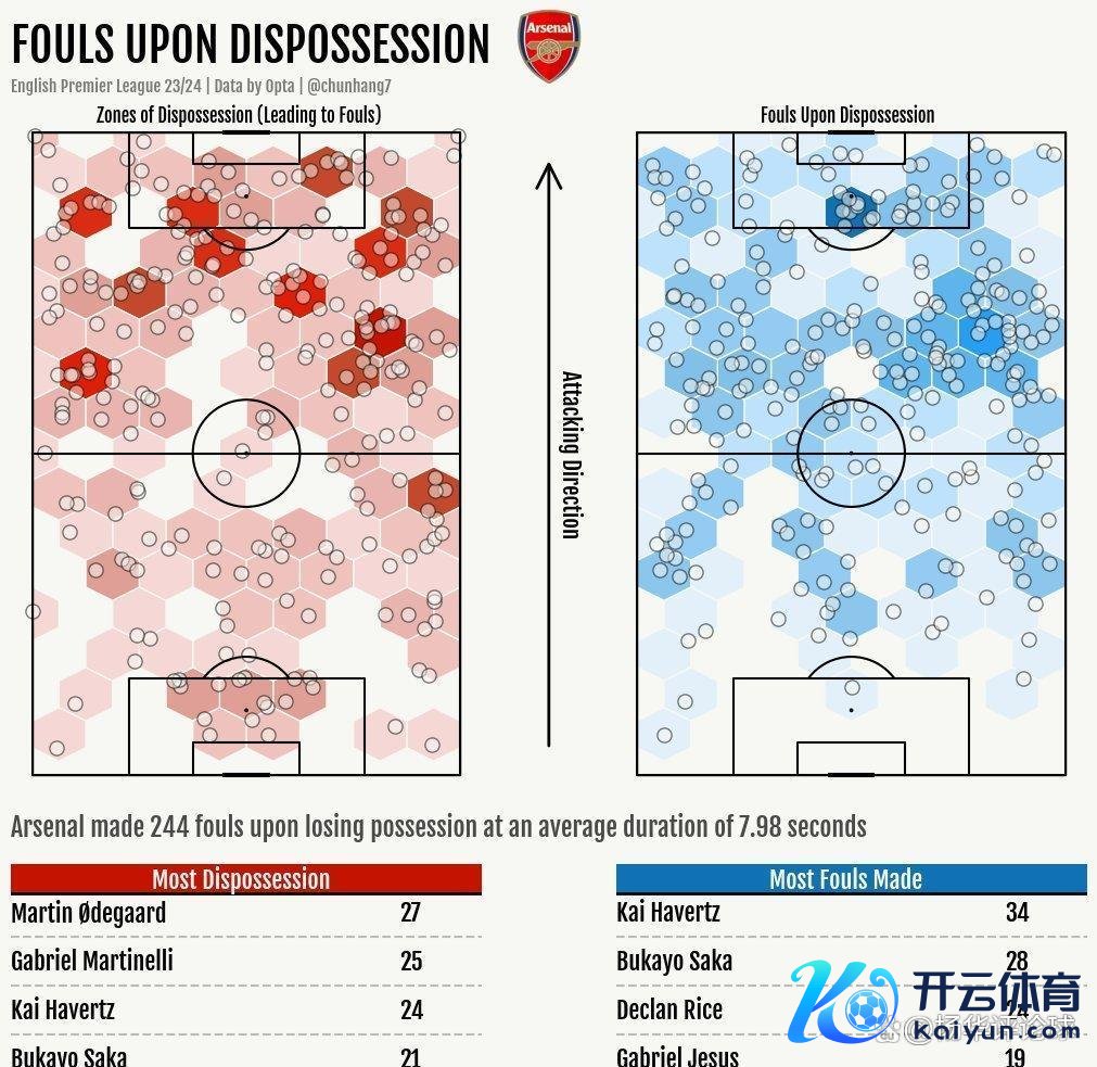 对位曼联左路的,恰正是阿森纳的强侧厄德高、萨卡,本赛季阿森纳逼抢强度最高的区域,也恰正是厄德高、萨卡这一侧,他们甚而在丢失球权的技艺,同意用犯规来梗阻敌手的快速反击,让敌手无法酿成快攻,从丢失球权到犯规,阿森纳的平均技艺为7.98秒,而况本赛季在高位完成了244次犯规。
