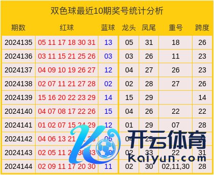 上期红球号码龙头为02,凤尾为30,开出3枚重号02,11,30,跨度为28。