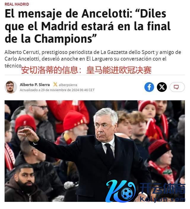 11月29日,《米兰体育报》记者、与安切洛蒂私东说念主干系密切的Alberto Cerruti,作客塞尔电台“El Larguero”节目时,浮现一个对于皇马和安切洛蒂的小故事。