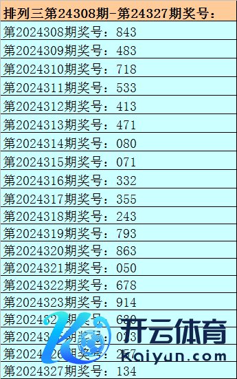 1.摆设三最近十期诀别开出号码:243-793-863-050-678-914-630-023-257-134,其中有5期奖号开出了上期的叠加号码,本期展望第2024327期奖号:134中有重号,参考号码:3。