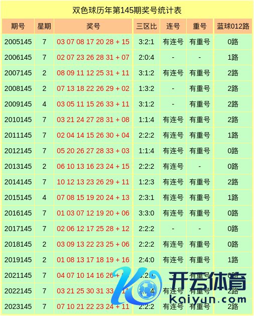 红球重号:在第145期历史同时开奖中,有15期奖号包含了重号,重号出现比例为83.33%,本年同时瞻望出现1个前年第145期红球重号,参考重号11。