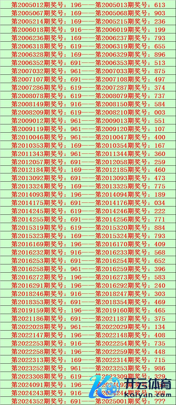 陈列三第2025001期开奖日历:2025年1月1日体育最新信息,历史上第001期已开出了21次奖号,积年同时号码差异为:192、054、184、038、659、325、327、928、003、524、963、397、828、092、177、322、202、326、378、458、403。