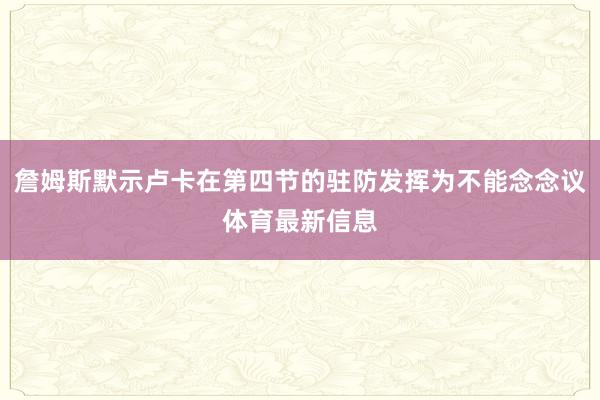 詹姆斯默示卢卡在第四节的驻防发挥为不能念念议体育最新信息